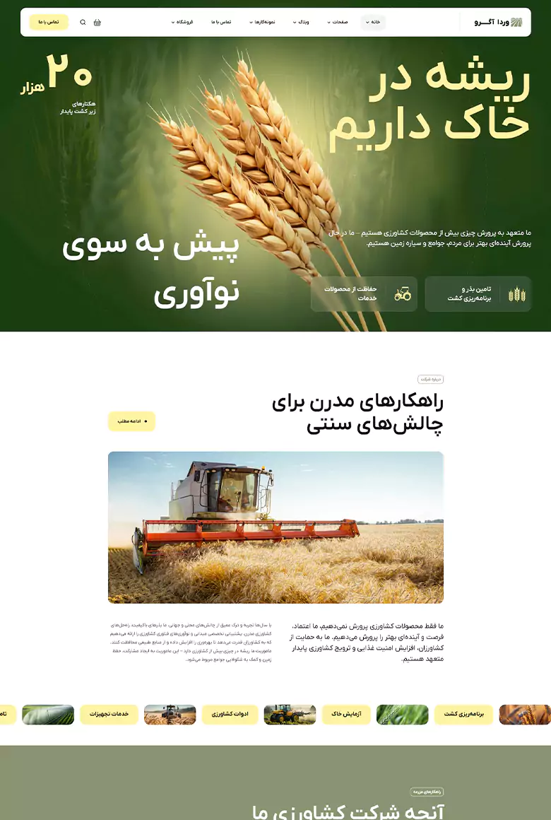 شرکت ما با ریشههای عمیق در سنت و تمرکز بر نوآوری، محصولات کشاورزی با کیفیت بالا و راهکارهایی را ارائه میدهد که از کشاورزان حمایت میکند، امنیت غذایی را افزایش میدهد و شیوههای پایدار را ترویج میدهد. از خاک تا برداشت، ما در تولید محصولات کشاورزی، فناوری کشاورزی، لجستیک زنجیره تأمین و کشاورزی سازگار با محیط زیست تخصص داریم.